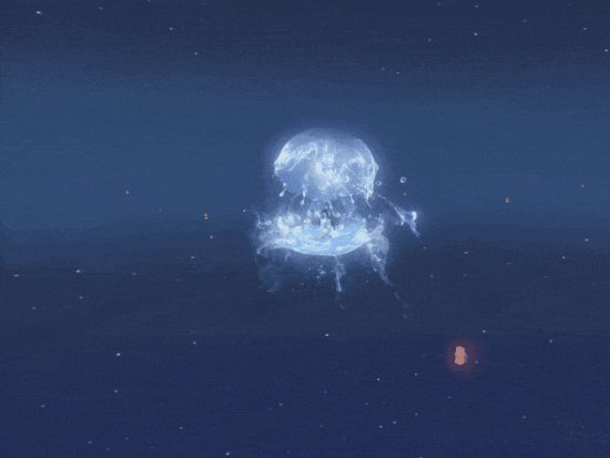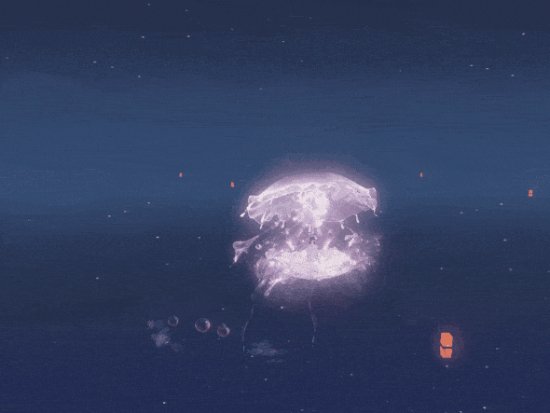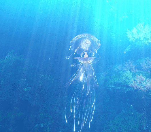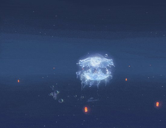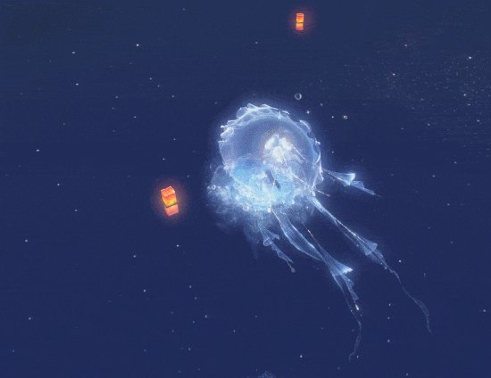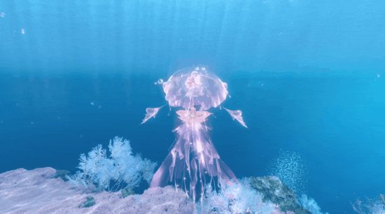 碎月浩渺初曳水,时见清波转玉盘。银汉素彩涵虚白,皎洁幽梦随潮生。海陆空三栖双形态【海月幽梦】澄澈明净,半透明蓝色使它与海底环境完美融合,拖曳着长长的触须,在海底也能拉风到极致。