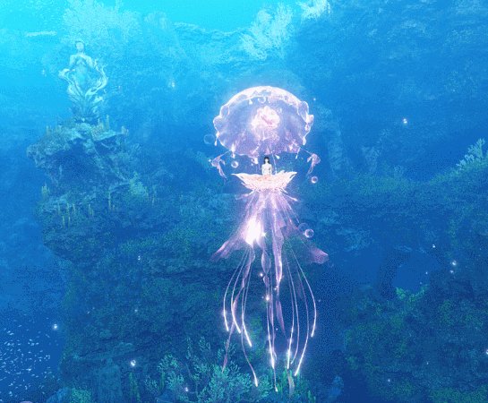 作为江湖首个能在海洋与陆地上共同使用的祥瑞,【海月幽梦&琉璃幽梦】不仅能在水下尽情漂浮,在陆地上也是同样的轻盈动人。