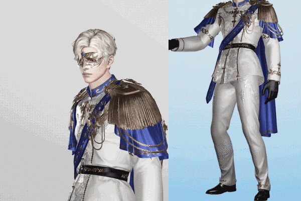 【命定契约礼装外观】的男款为正装款式,华贵精致的流苏肩饰搭配绸缎质感的披肩,尽显优雅气质。