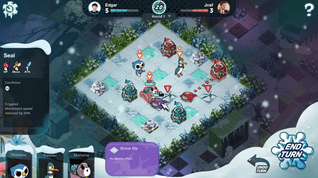 在《South Pole Bebop》的冰雪梦境里,9x9的极地棋盘铺展成晶莹舞台~每回合可调配3种特色能力卡牌,搭配12种萌趣角色,像拼图般构筑专属战术!据统计,78%的回合能触发惊喜连锁反应:用冰霜护盾守护基地时,或许会意外唤醒沉睡的企鹅盟友;布置激光阵列防御时,又可能点亮极光为队友加持~在这片零下30度的魔法大陆,对战不是竞争,而是与好友携手编织的温暖童话!