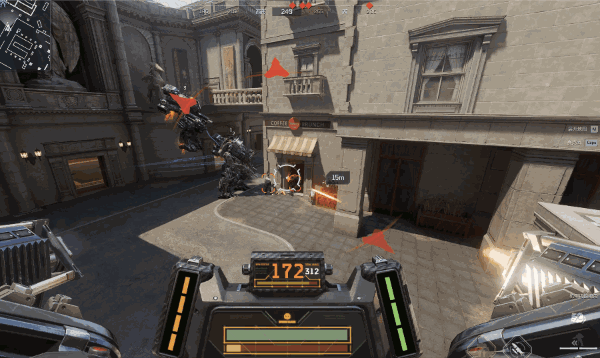 4.机甲体型都较大,若与敌人处于特定角度,可能会出现视野盲区——比如敌人卡在门后,机甲无法用子弹命中,或者敌方在我们脚下持续输出我们,遇到这种情况,可以直接跳跃快速拉开距离,或者来到高处观察并击败敌人。如果敌人距离很近,可以使用近战或冲撞、践踏等技能就能完成击败。此外如果使用喷火器,则可以在门口直接烧到敌人。