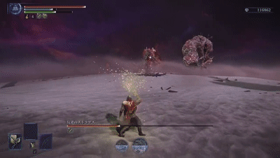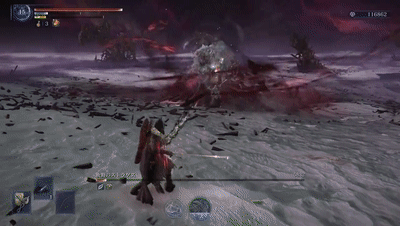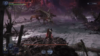 BOSS在攀上瓦砾之后,会施放快速向玩家角色俯冲突刺而来的攻击。此招式威力极高,可能一击致人濒死,需要看准时机进行躲避。