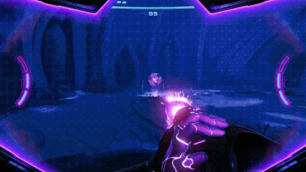 站在平台上时,蓄力操控控制光束(Control Beam),一次性击碎这 3 个目标物。完成后,锁住的大门将会开启,谜题即可破解。