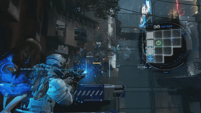机器人敌人均装备了强化的装甲。需操作侵入矩阵才可强制解除它们的装甲,移动光标,用一笔画的感觉连至绿色结点(终点)。此时,攻击敌人露出的弱点即可大幅提升伤害。