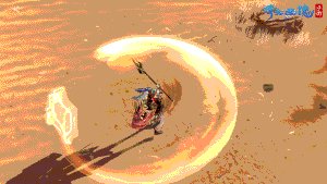 一双美目满含战意,手抡方天画戟勇敌双刃战狂,但见飞沙走石间,兵器碰撞激出火星,飘飞的长袍荡出风声,石云馨骁勇无畏,战至正酣,尽显甲士风范!