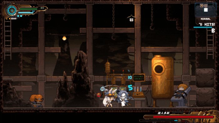 这种设计自然也会存在一些短板,例如你会发现《TEVI》提供给你的近战武器总共也只有那么一把小刀而已,而没有像《恶魔城》系列中那花样百出的十八般武器。
