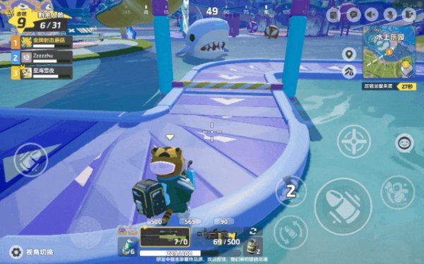 在更新的玩法中,玩家兴致最浓的莫过于「突围梦幻岛」。「突围梦幻岛」采用的是玩家非常熟悉的战术竞技模式,但在细节上还是做了许多更符合派对游戏的调整。比如我们近10局的尝试里面,单局游戏时间维持在10分钟左右,这种更偏碎片化的玩法体验可以让玩家体验派对式战术竞技的快乐。