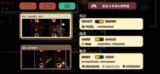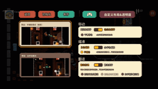 相较于PC版的“地狱难度”,《挺进地牢》手游此次在新手引导和操作上针对手游玩家的习惯投入大量精力,其中帮助最大的是可开关的【半辅助模式】。