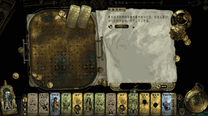 作为一款国产独游,开发它的双头龙工作室并没有通过硬刚美术与画面表现来展现这个游戏的“猎奇”,而是采用了类似于《密教模拟器》的玩法,以卡牌和文字的形式来呈现所有的内容。玩家需要向不同的事件里放入对应种类的卡牌,并通过完成类似于TRPG或跑团的属性与骰子检定完成事件,推动故事发展。