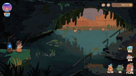 在忙碌的间隙,和小猫菲舍一起踏上旅程,探索星球上不同氛围的风景,欣赏独特的自然风貌,享受悠闲惬意的垂钓时光。
