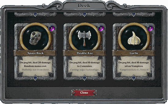 在战斗中你将会面对数十种武器卡牌的随机刷新。请谨慎选择卡牌,用来攻击敌人或保护自己。战胜敌人并收集遗物,可以让你拥有更强大的能力。此外,你还可以购买或出售卡牌,以便打造出最强大的组合。