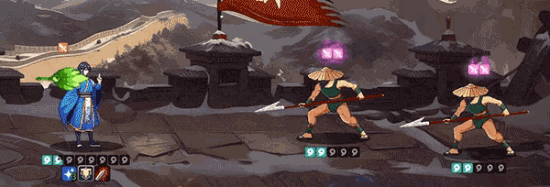游戏中的卡牌分为“攻”“防”“技”“辅”四种,没有类似《杀戮尖塔》的法力值设定,取而代之的是对每一种类型卡牌的出牌时机限制。玩家可以在自己的回合出任意张技能牌和辅助牌,且在非特殊情况下只能出一张攻击牌,而每一个敌人行动的回合玩家都可以选择出一张防御牌或者其他牌来响应敌人将要对玩家做出的指令。游戏在基础卡牌的效果和牌面上也融合了《三国杀》的”杀闪桃酒“组合,一定能给玩家带来前所未有的体验。