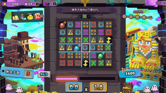 与市面中大部分三消游戏一样,《夺宝砖家》依旧沿用了“消消乐”经典的玩法框架:同类消除、多消特效、步数限制、分数标准......这意味着无论你是新老玩家,大概还是很容易上手的。