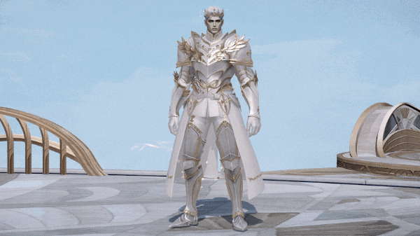 【天空翼能】套装采用白金颜色的搭配,彰显华丽,英武的气质,仿若制裁邪恶的天神,散发着夺目耀眼的光芒;而【天空权耀】则是在蓝白相间的衣装上点缀金属的装饰,神圣且优雅,显示出独特的魅力。